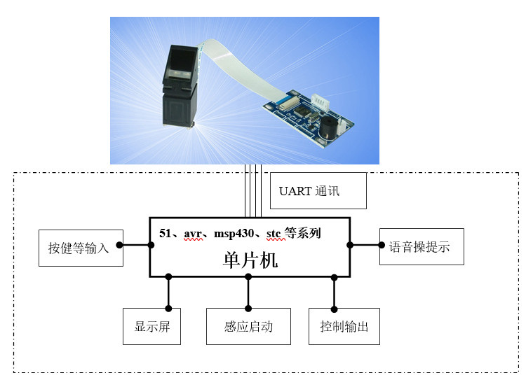 說明:指紋模塊具有獨立功能的指紋錄入、圖像處理、特征值提取、模板生成、模板儲存、指紋比對和搜索等功能的智能型模塊;提供UART接口和通訊協(xié)議,專業(yè)為科研單位、應(yīng)用集成廠商提供標(biāo)準(zhǔn)二次開發(fā)指紋套件,快速、方便集成應(yīng)用。