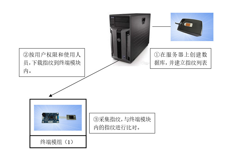 說明:本系統主要是在服務器上建議全員指紋數據庫,在需要時,分批下載指定人員的指紋到指定的終端設備上進行認證。